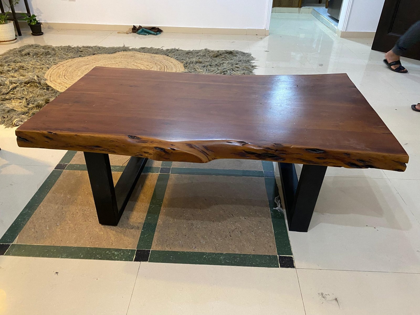 Coffee Table & Center Table Sets Live Edge Center Table | Natural Wood Slab with Black Metal Base, Home R us د.إ 700.00