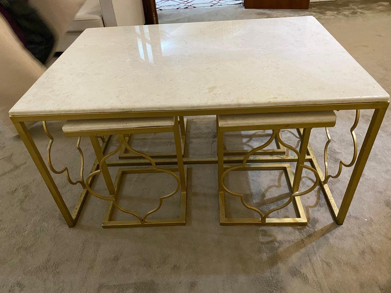 ↓ 25% Coffee Table & Center Table Sets Ivy Bronx Mystras End Table | White Marble & Geometric Metal Base د.إ 200.00 Original price was: د.إ 200.00.د.إ 150.00Current price is: د.إ 150.00.