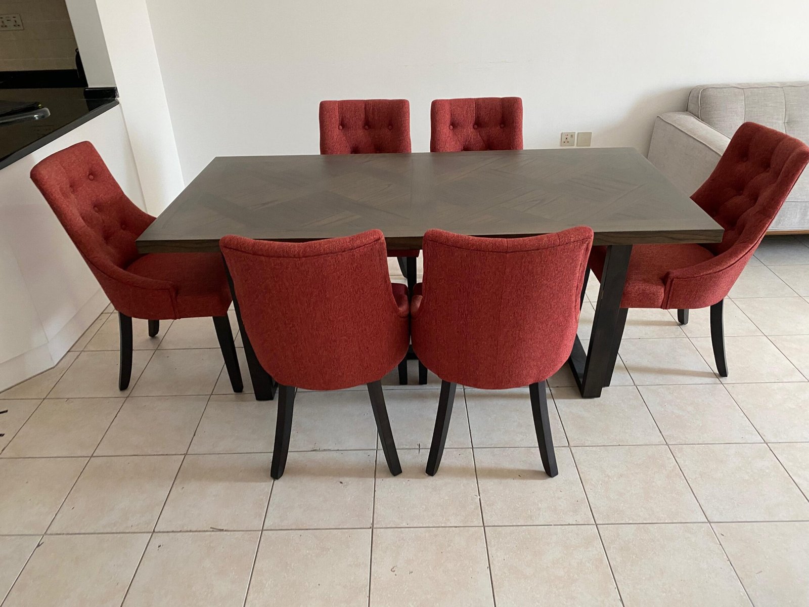 Dining Sets & Chairs Home Center 6-Piece Dining Set | Bold Red Upholstery & Modern Contrast د.إ 1,500.00