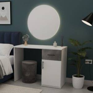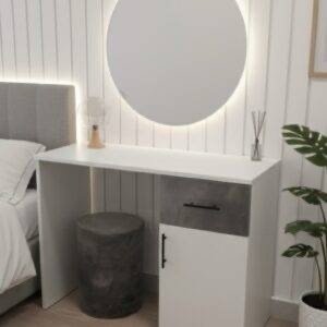 ↓ 7% Dressing Tables & Vanity Table Modern Vanity Dressing Table Set | White & Grey with Circular Mirror & Stool د.إ 700.00 Original price was: د.إ 700.00.د.إ 650.00Current price is: د.إ 650.00.