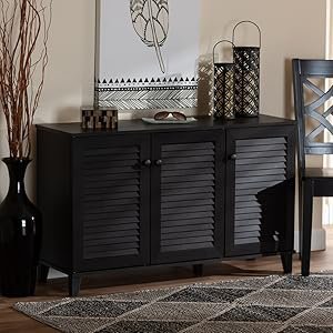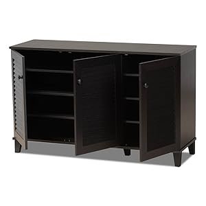 Baxton Studio Warren Shoe Storage Cabinet | Rich Espresso Finish with Louvered Doors