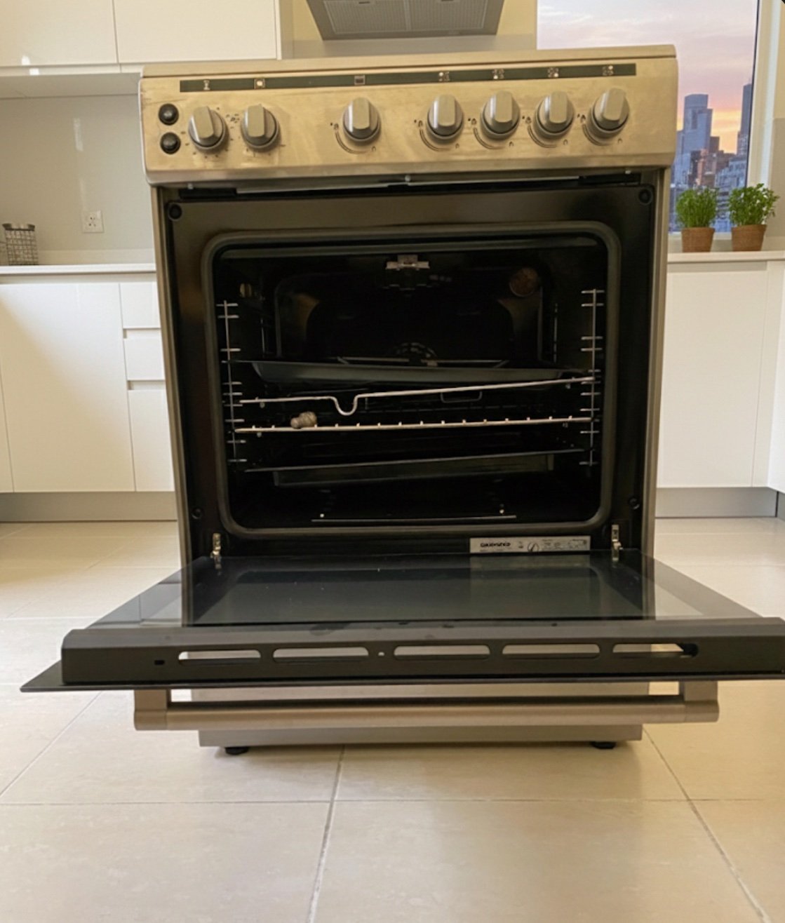 Upgrading to a modern gas cooker with safety features and professional performance.