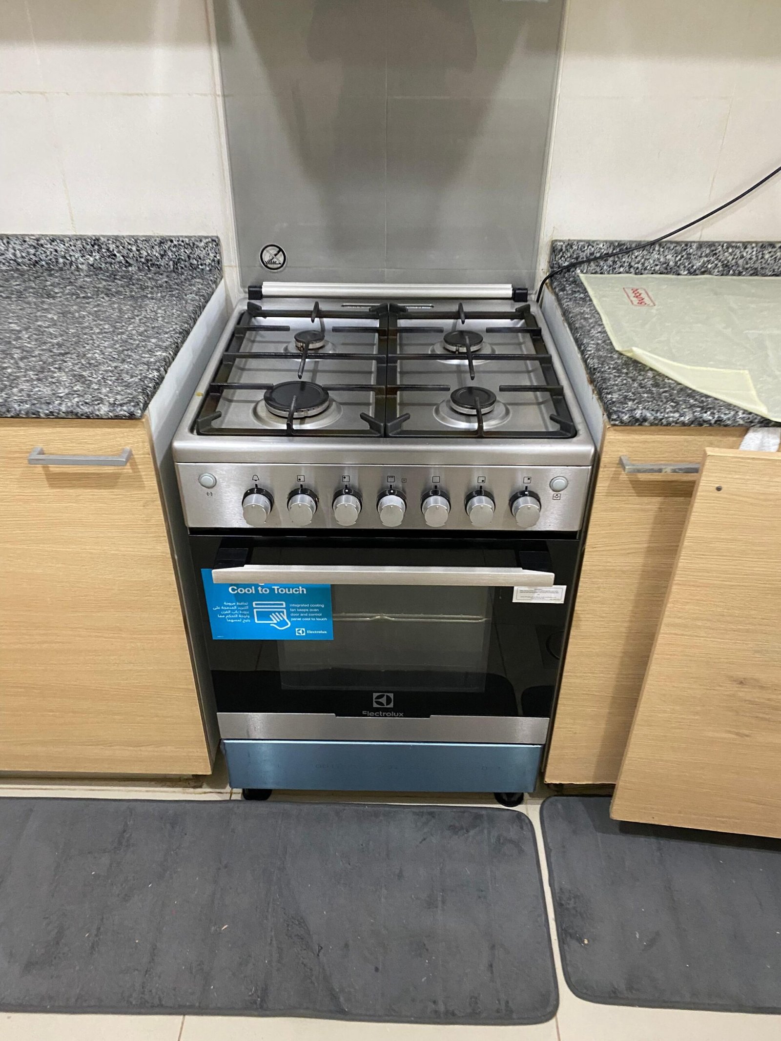 Engineered for safety and performance, this freestanding Electrolux gas cooker offers a premium cooking experience for any modern kitchen. Featuring the innovative Cool to Touch™ cooling system and a durable stainless steel finish, it is expertly designed to combine professional functionality with family-focused safety. In pristine, like-new condition after only eight months of use, it delivers reliable, high-quality performance.