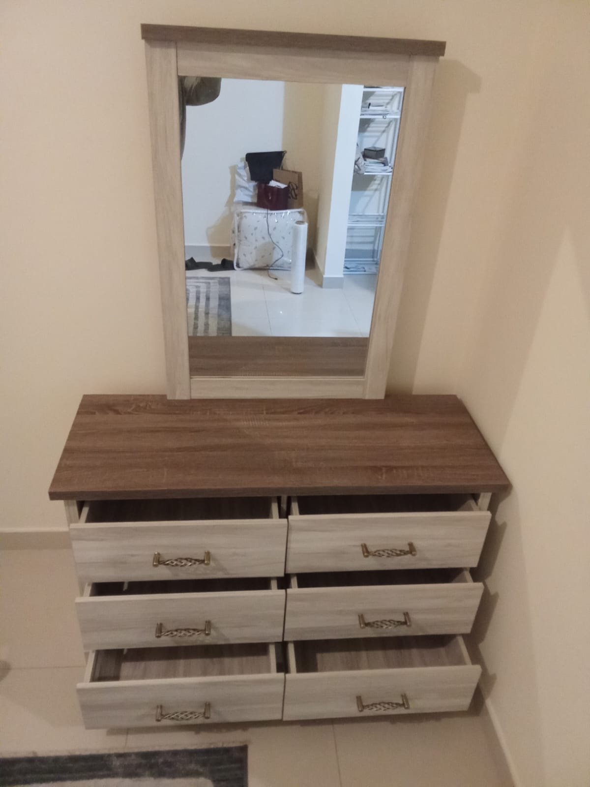 ✅ Integrated Dresser Mirror – Adds function and brightness to the room.