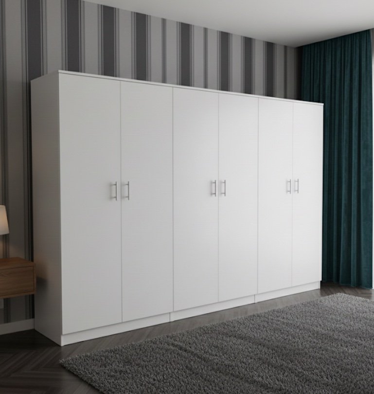 ✅ Ample 6-Door Design – Offers extensive hanging and storage space, easily accessible through six full-length swing doors.