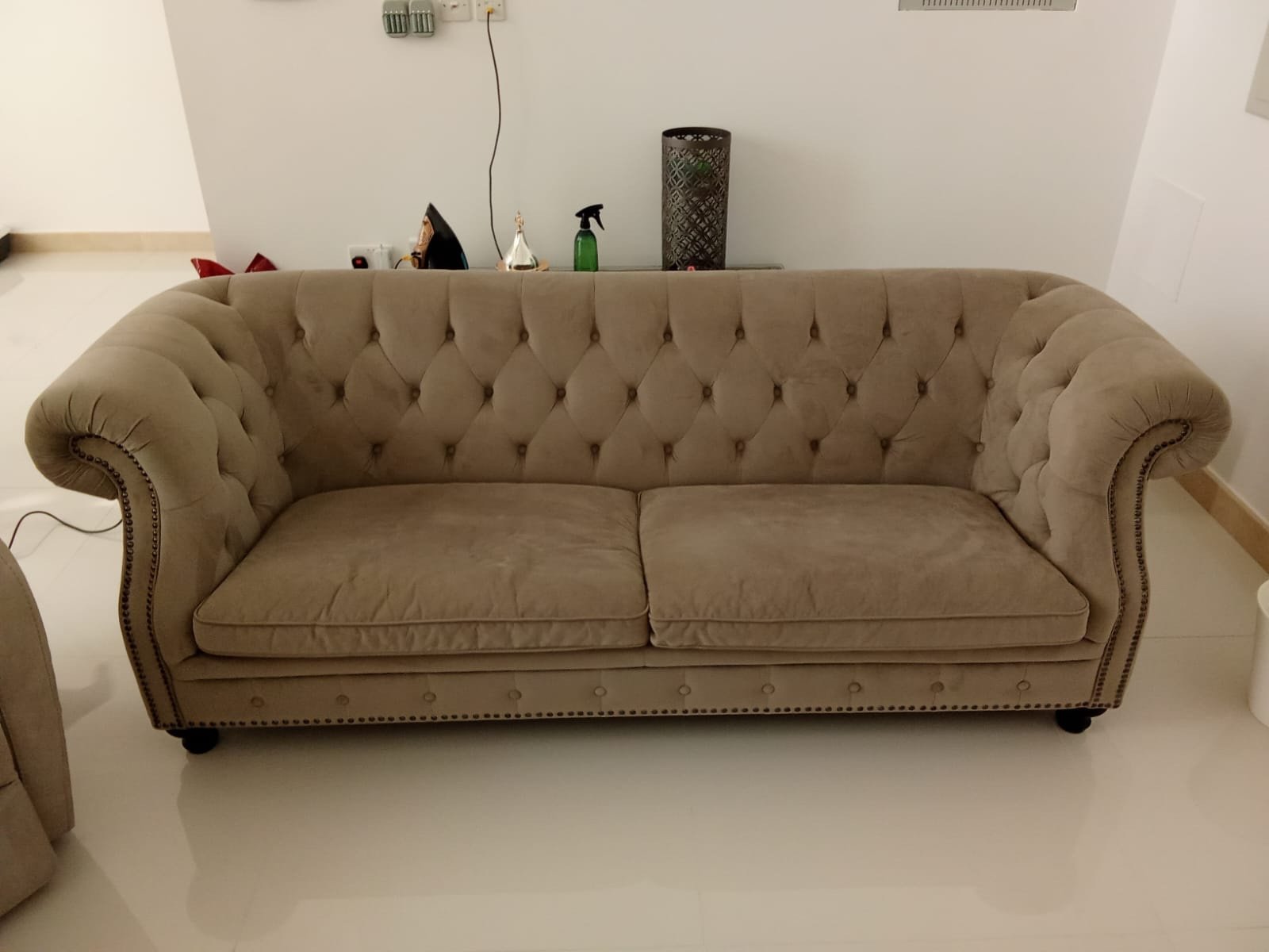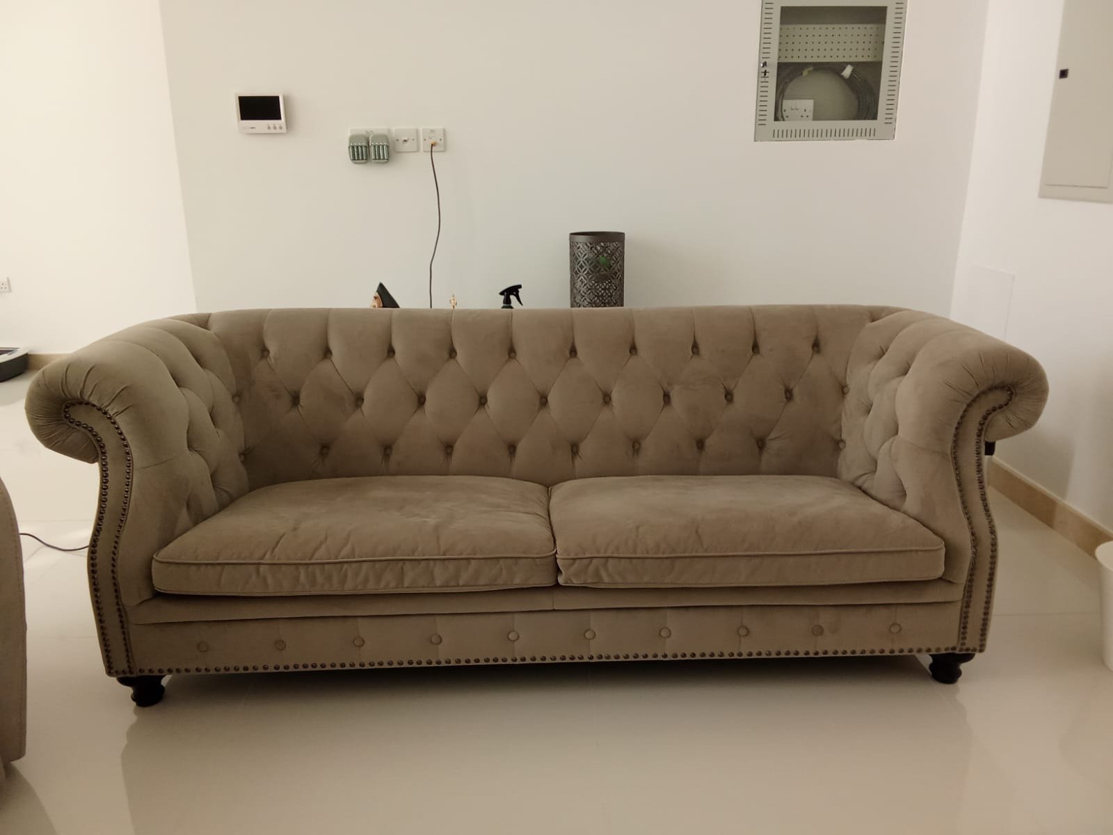 Be the first to review “Home Centre Chesterfield Sofa | Classic Design in Beige Velvet”