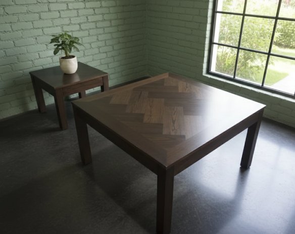 ✅ Elegant Herringbone Design – Features a stylish and timeless herringbone wood inlay pattern on the tabletop, adding visual interest and texture.