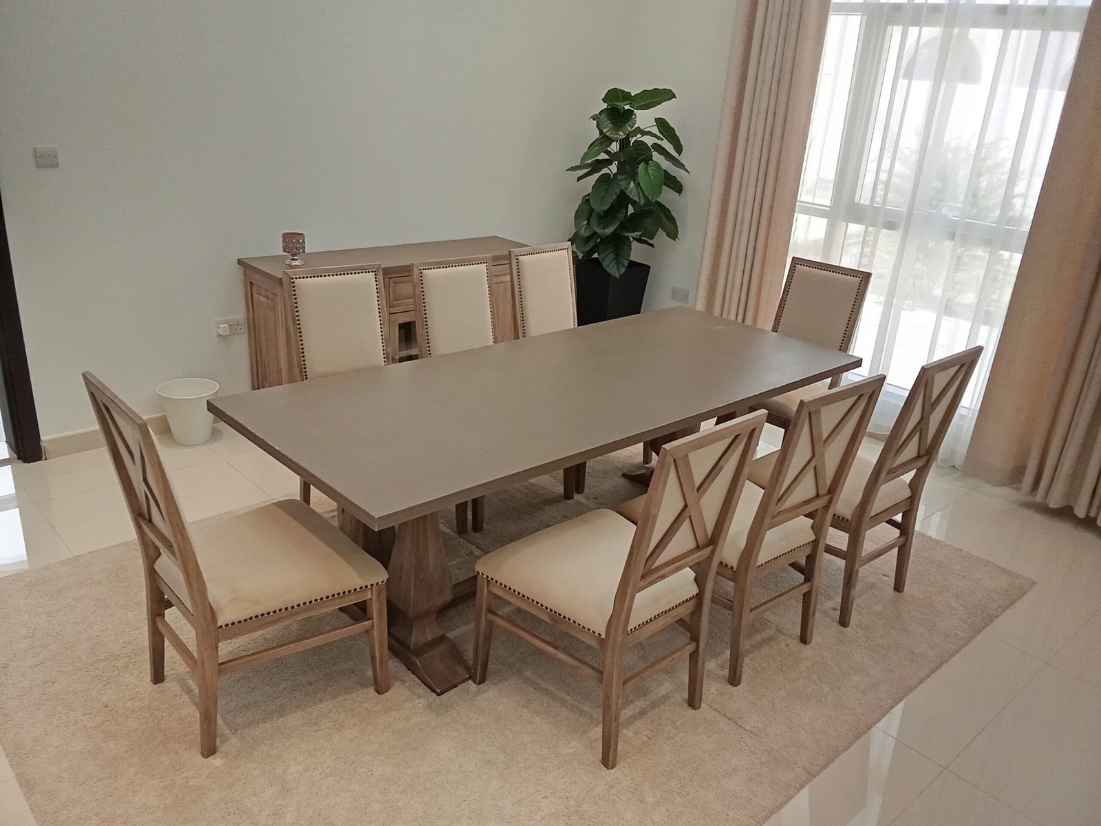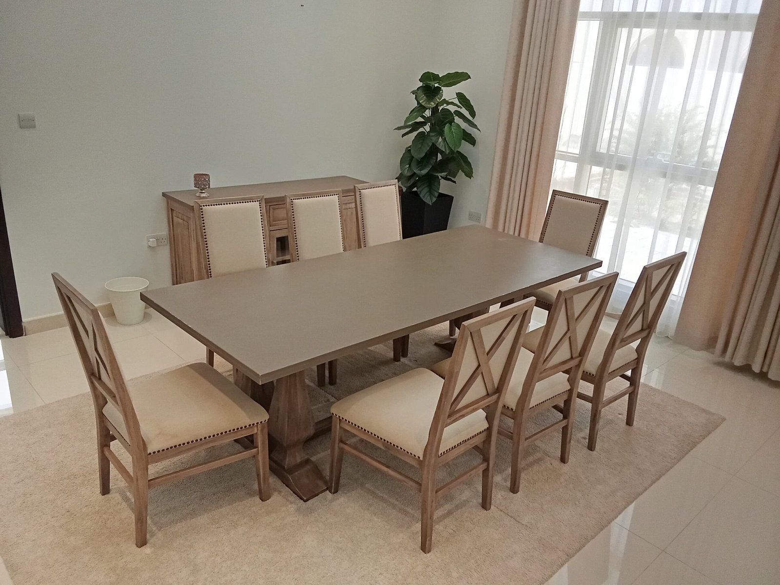 Buyers seeking a high-quality, gently used complete dining set that offers both aesthetic appeal and functional durability in pristine condition.