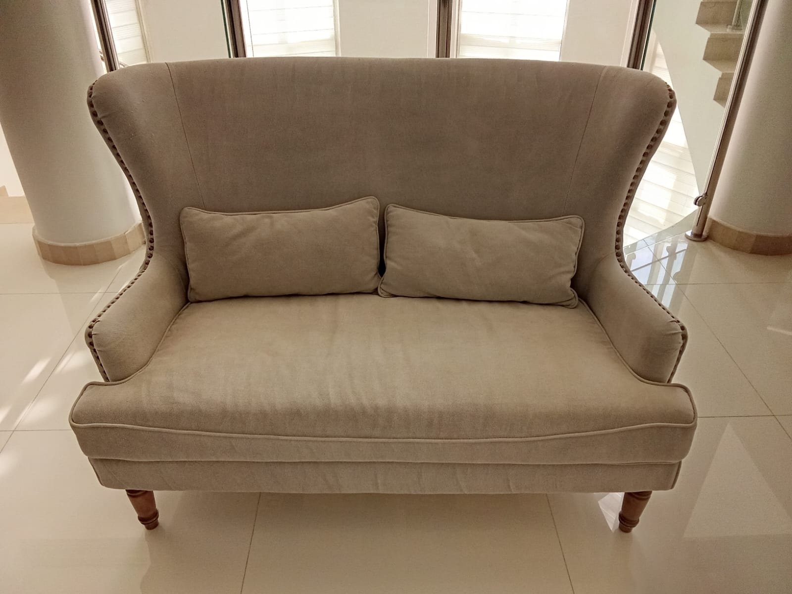 Home Centre Wingback Loveseat | Traditional Elegance with Nailhead Trim