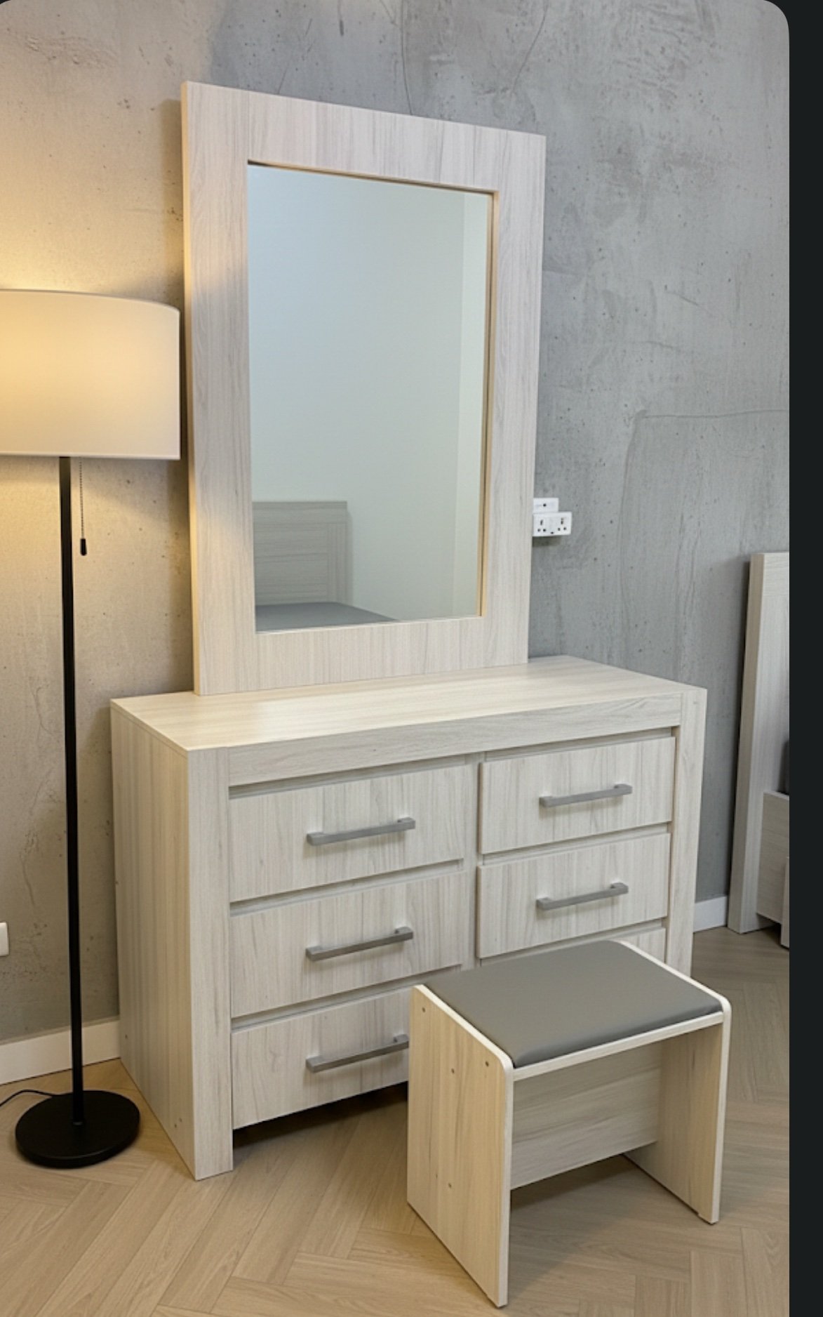 Achieve a serene and stylish bedroom with this impeccably maintained light wood set from Home R Us.