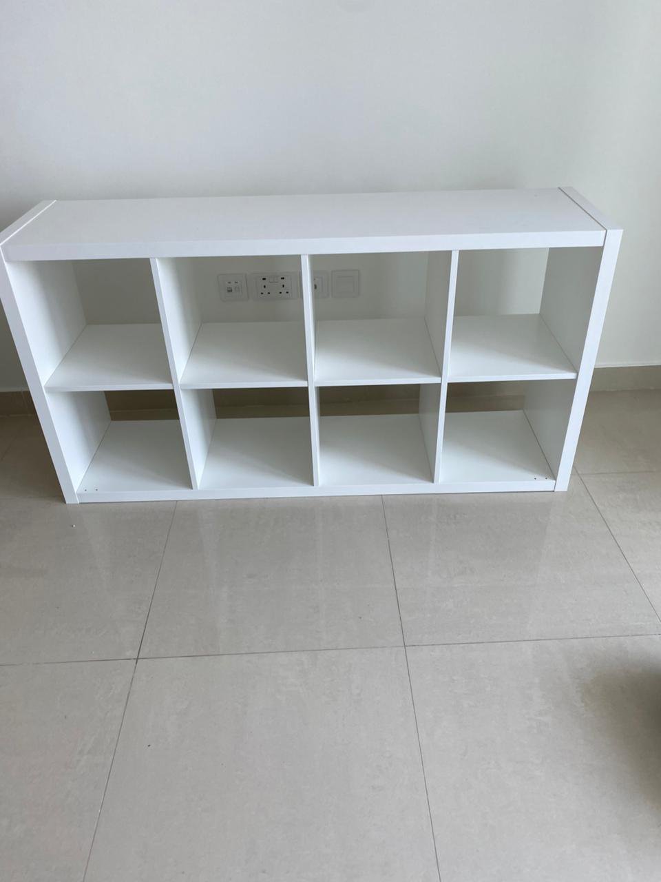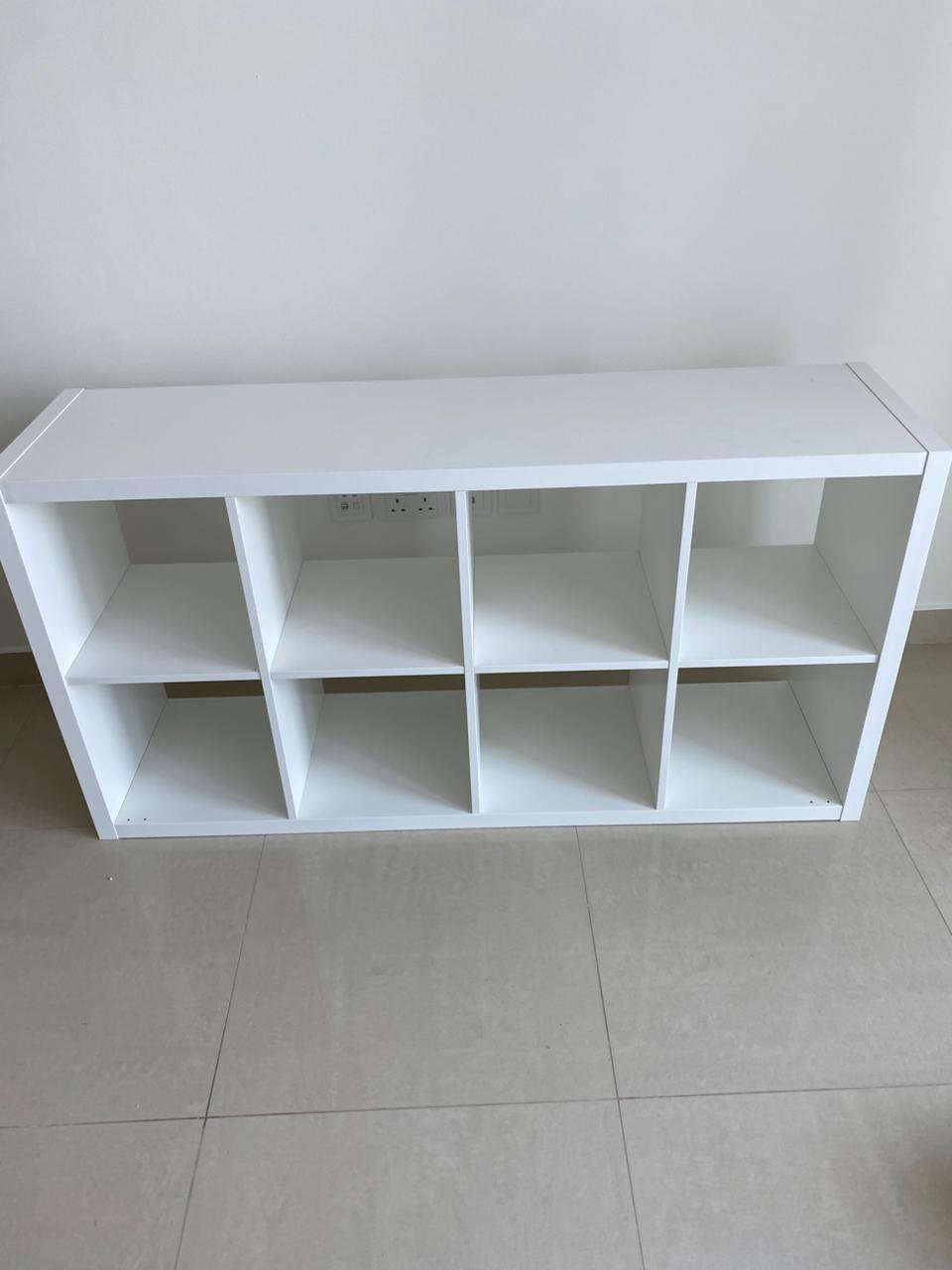 Unlock endless possibilities for organization and style with the IKEA KALLAX 8-Cube Shelf. This iconic, versatile unit features a clean white finish and a simple modular design, perfect for horizontal placement as a media console, room divider, or modern storage display. With eight spacious compartments, it offers a flexible canvas for books, décor, bins, or electronics. In pristine condition after just 2 months of light use, it’s ready to adapt to your space and needs.