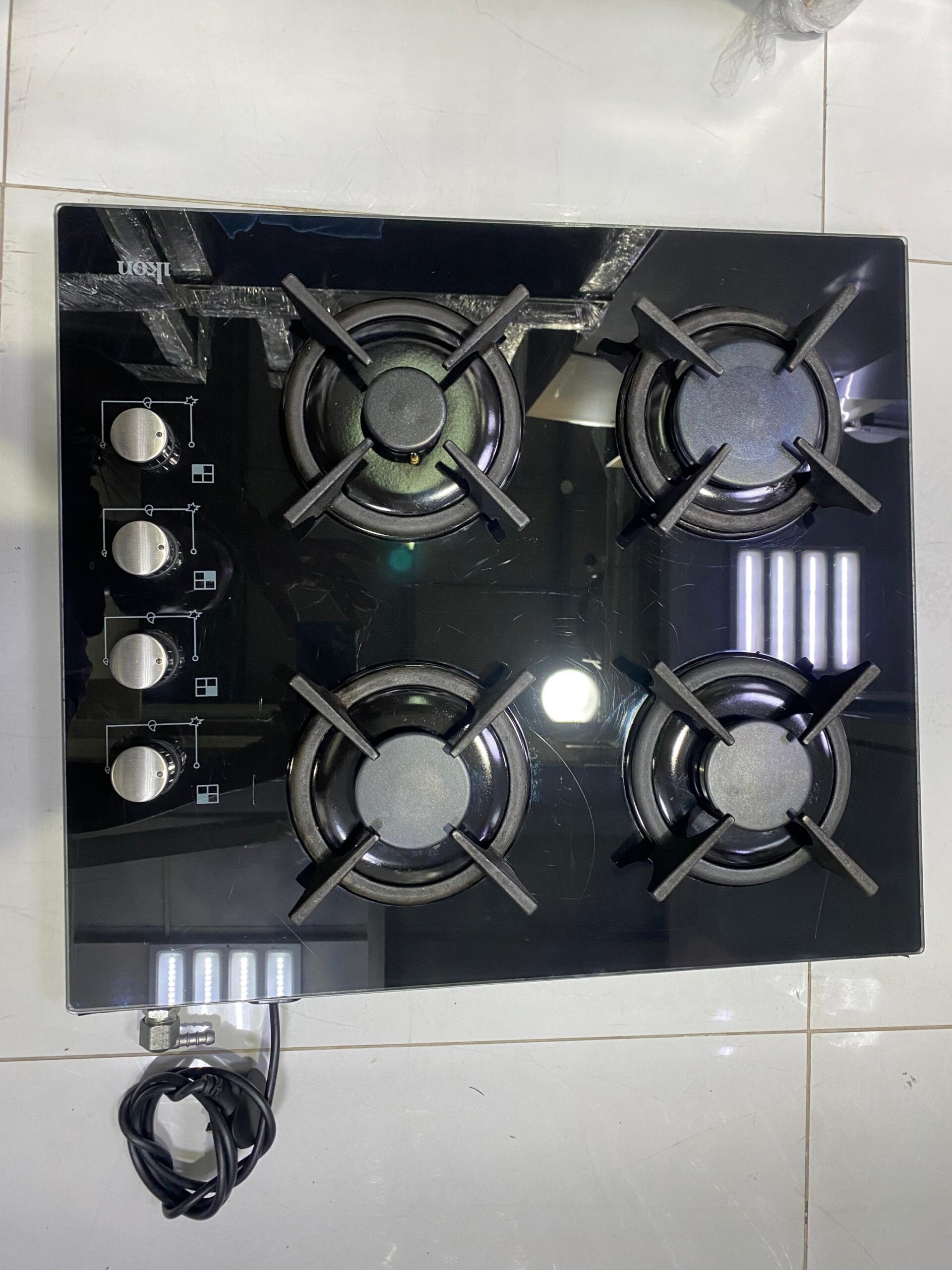 Up for sale is a premium IKON 4-Burner Glass Gas Hob with a stylish black glass cooktop, combining elegance with high performance. Perfect for modern kitchens, this hob offers efficient cooking with Blue Flame technology for optimal heat distribution and fuel efficiency.