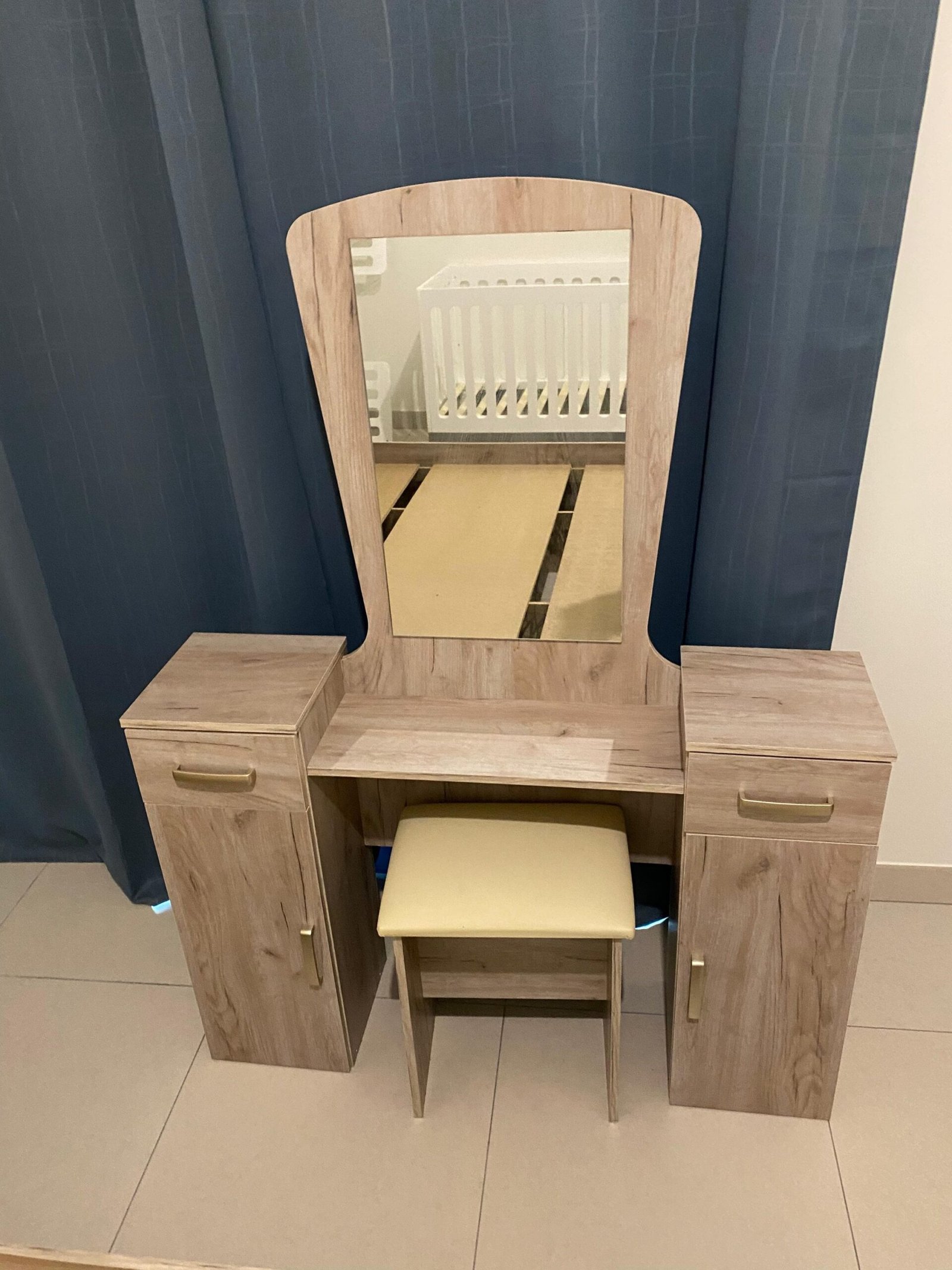 * Dressing Table with Mirror, 2 Drawers, and Closed Shelves