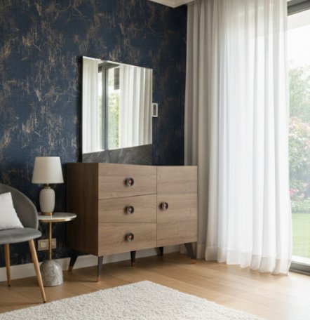 ✅ Excellent, Like-New Condition – Gently used for only 8 months and meticulously maintained. The upholstery is free of stains or wear, the wood surfaces are scratch-free, and all drawers and doors function perfectly.