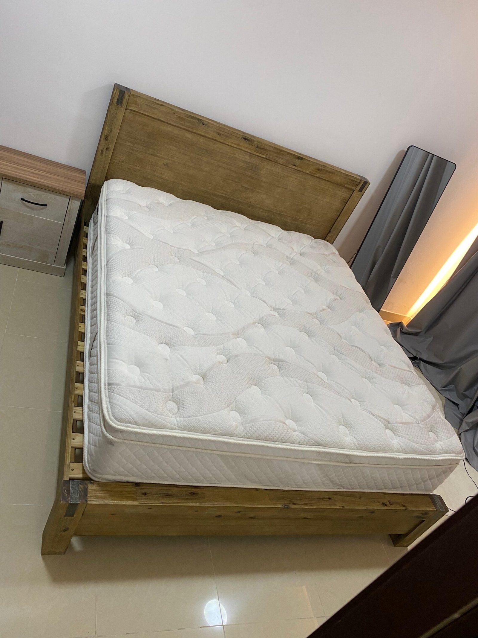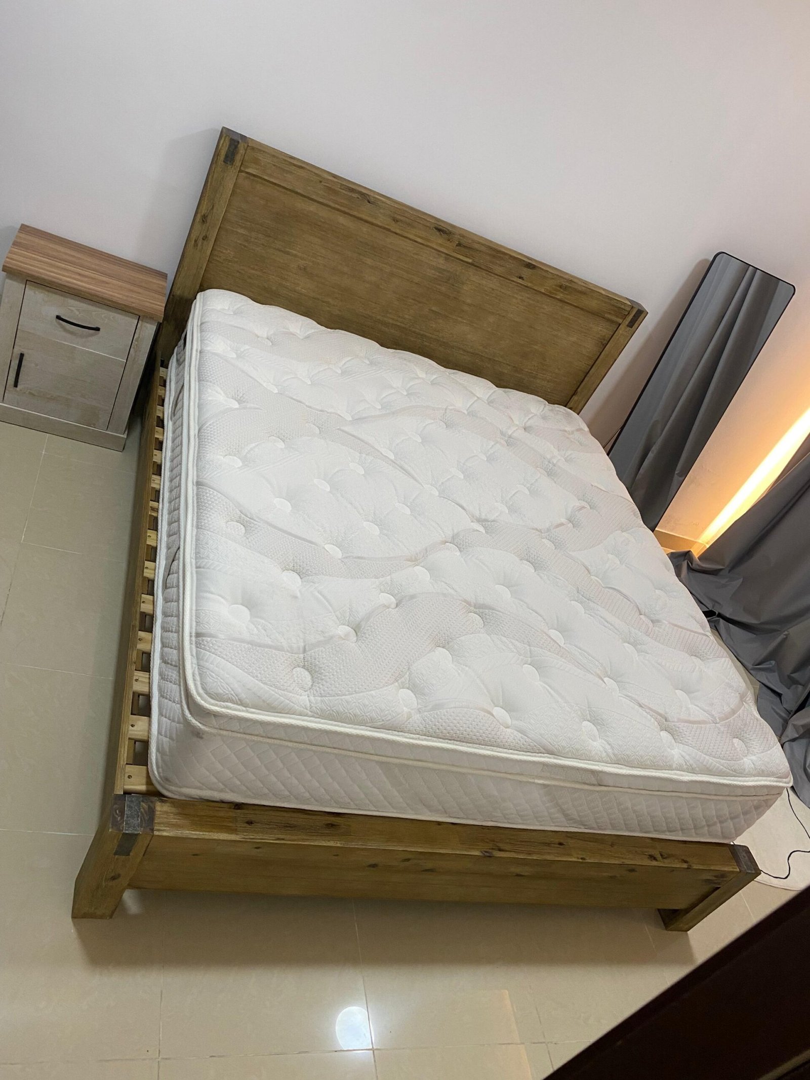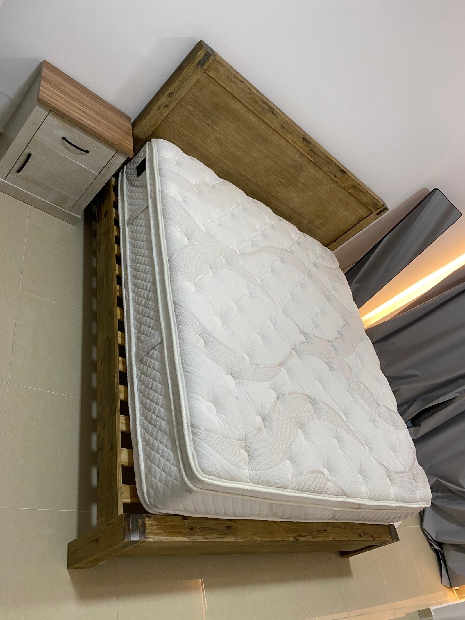 ✅ Excellent, Well-Maintained Condition – Lightly used for only 1 year. The frame and side table are free of major scratches, the finish is intact, and the mattress is clean and fully supportive.