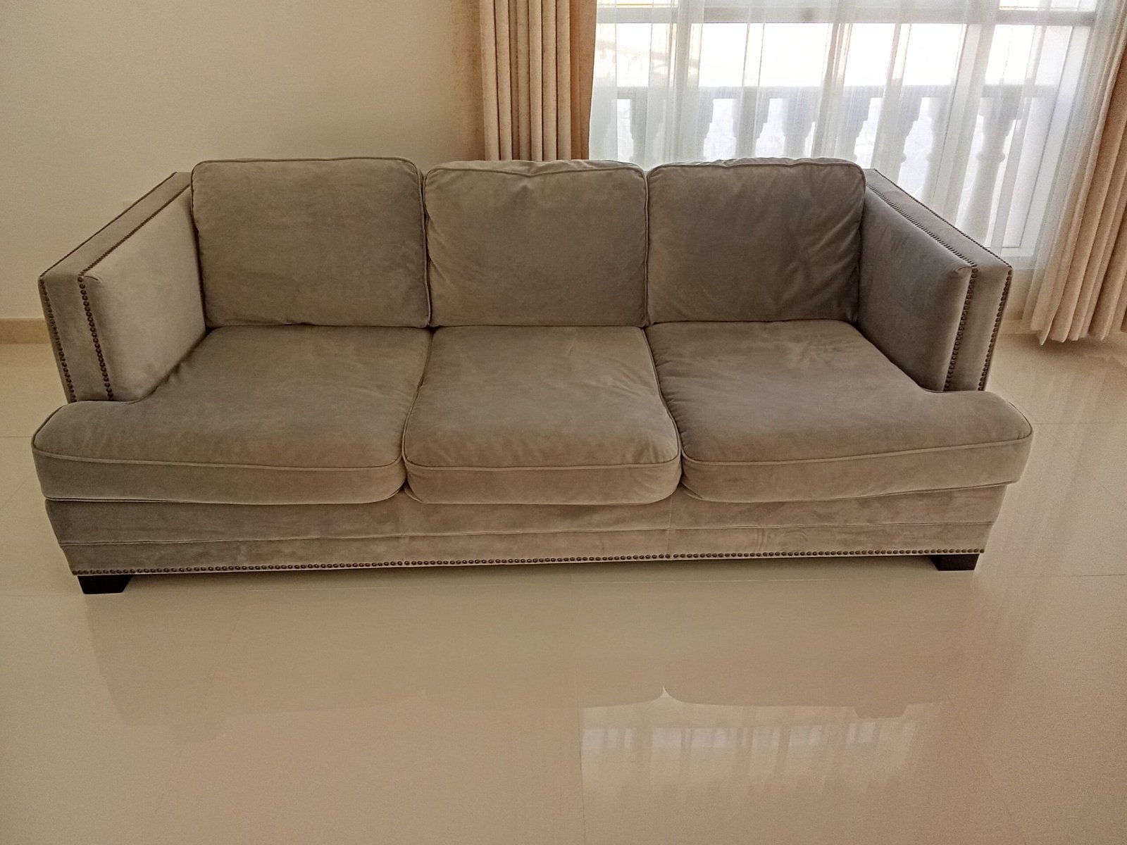 ✅ Sophisticated Neutral Upholstery – Upholstered in a versatile dove gray or beige fabric that complements a wide range of interior styles.