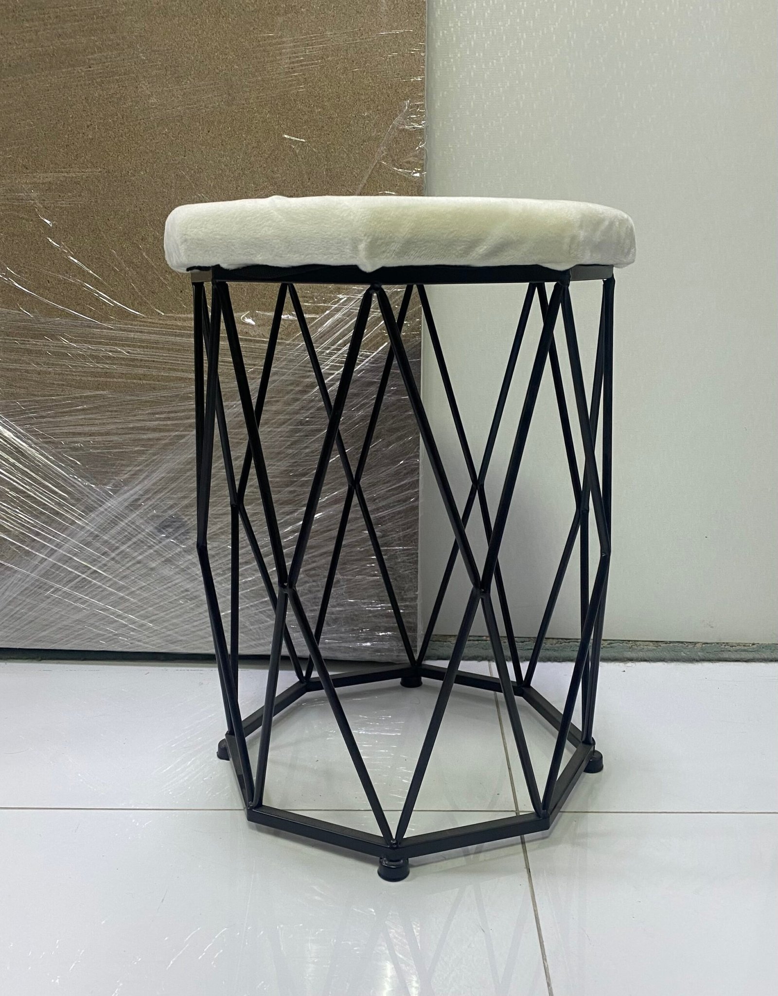 Be the first to review “Modern Geometric Stool | White Octagonal Seat & Black Metal Frame”