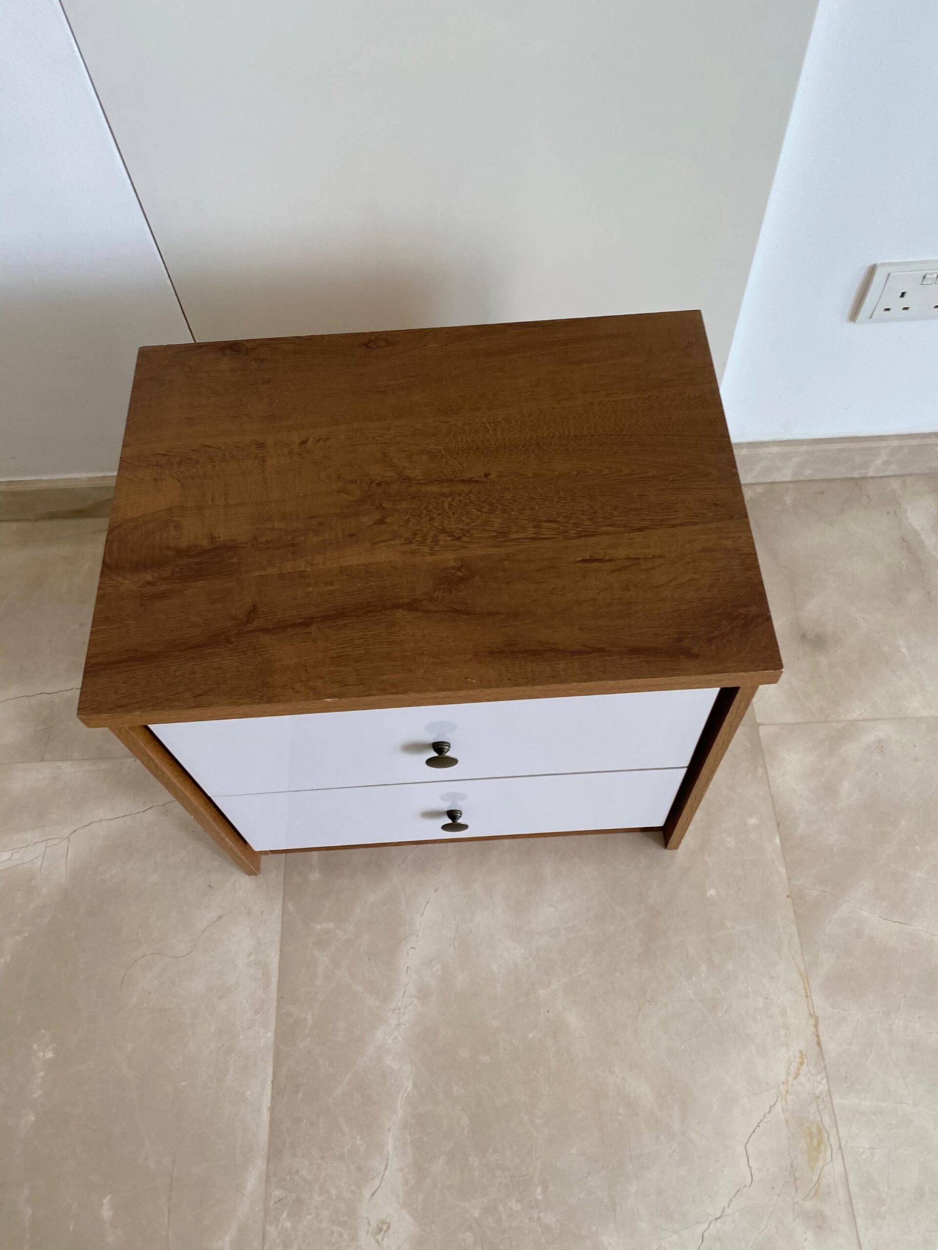 Add a touch of modern functionality to your bedroom with this elegant Night Stand from Danube. Featuring a stylish brown exterior with white drawers, this two-tone design offers practical storage while enhancing your bedroom decor. Used for just 6 months, it remains in excellent condition—perfect for keeping your essentials organized and within reach.