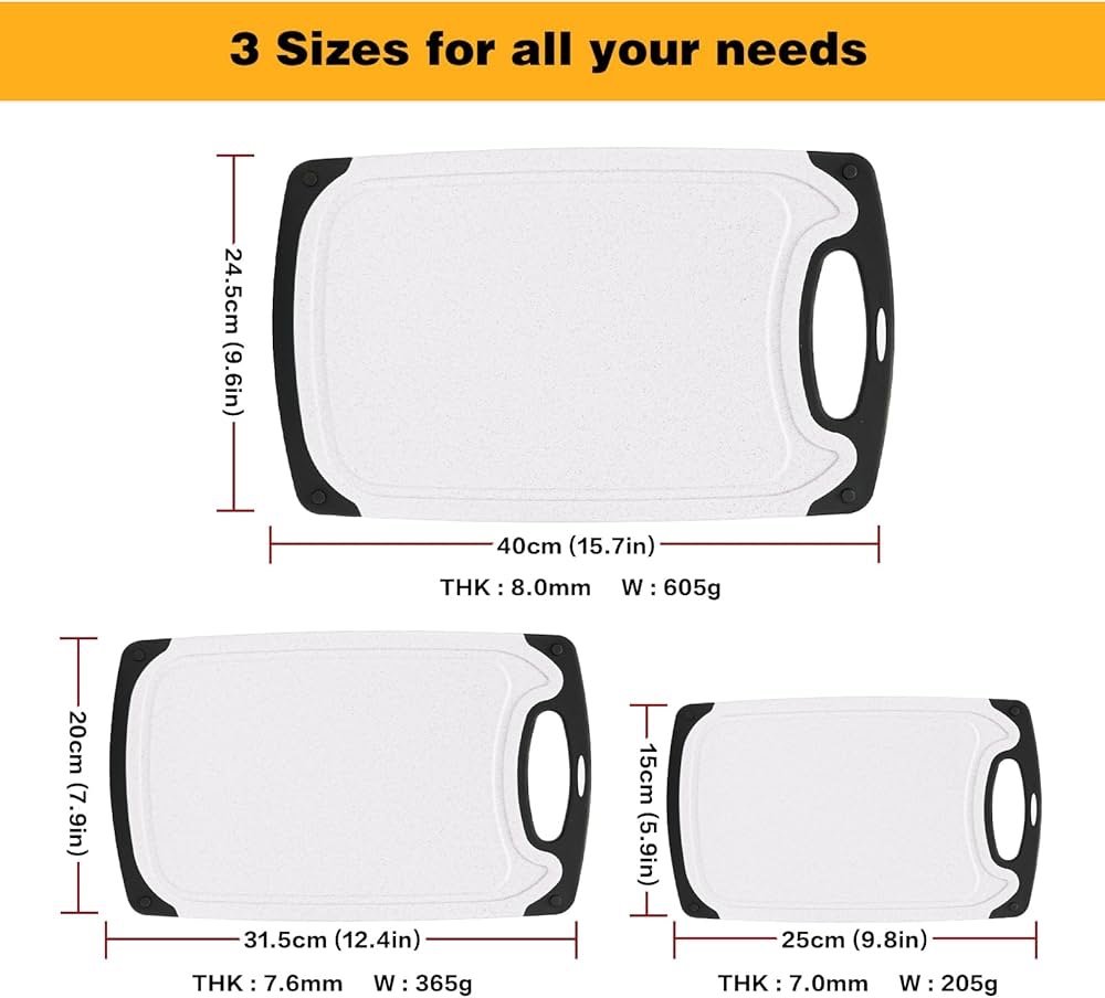 ✅ Three Versatile Sizes – Includes small, medium, and large boards to accommodate different tasks—from chopping herbs and vegetables to carving meats and slicing bread.