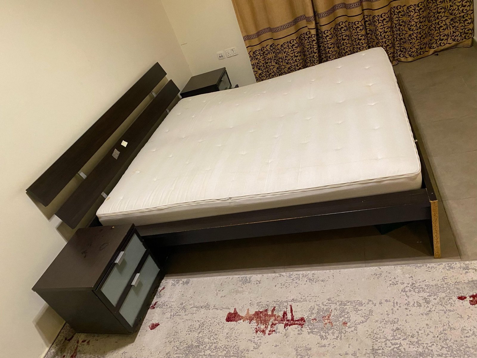 Upgrade your bedroom with this sleek and sturdy Queen Bed Set from IKEA. Featuring a bold black wooden frame and a comfortable mattress, this 160x200cm bed combines modern aesthetics with reliable functionality. Used for just 8 months and maintained in excellent condition, it offers an ideal sleep solution for those who appreciate clean, contemporary design.