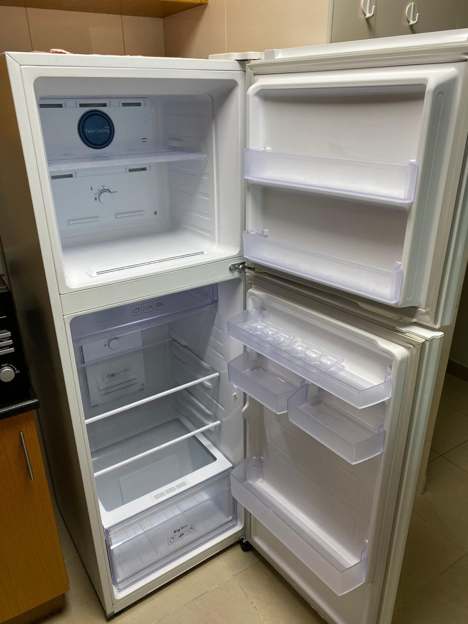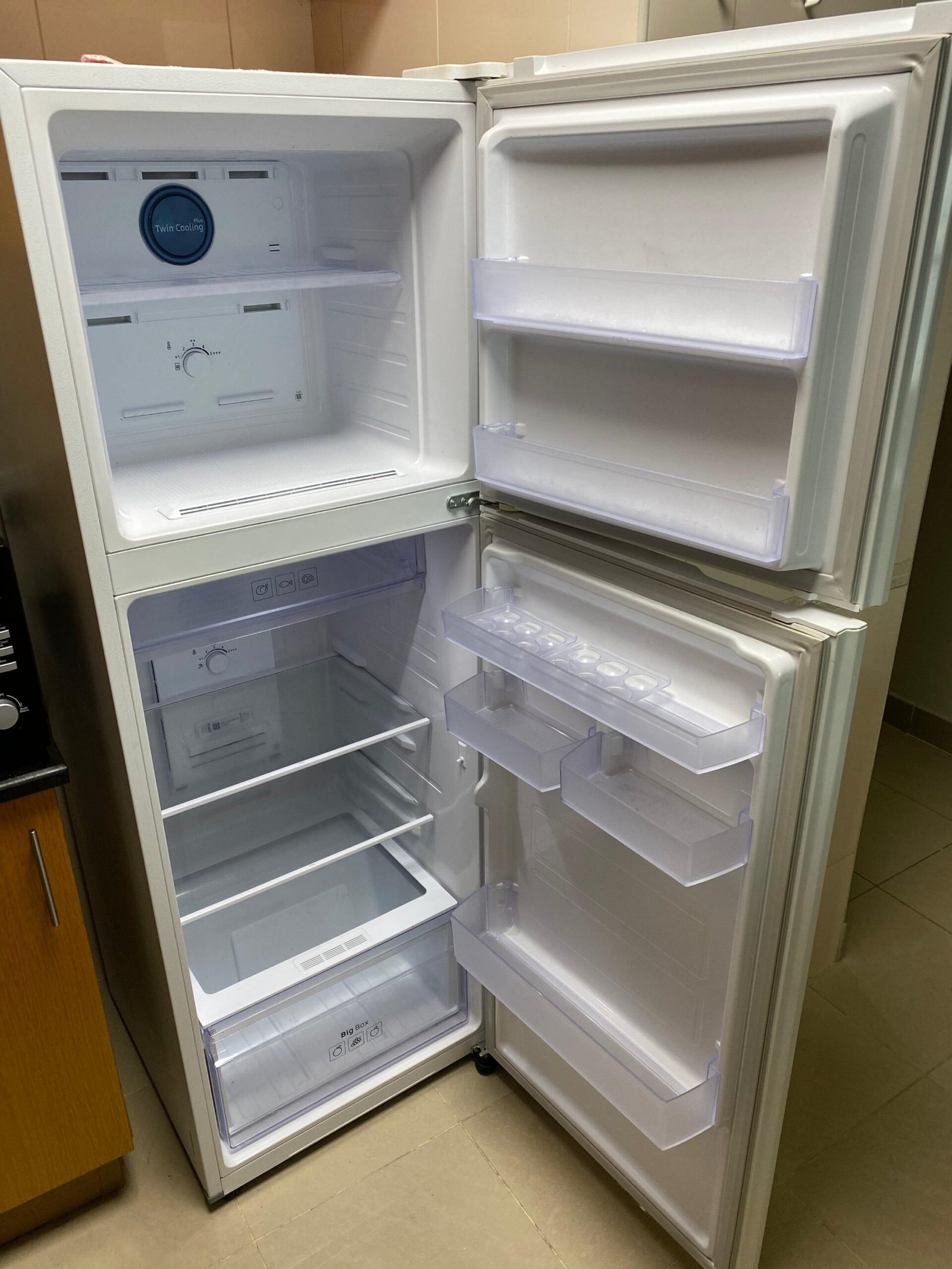 Keep your groceries perfectly fresh and organized with this reliable Samsung Top Mount Refrigerator. Boasting a generous 360-liter capacity and a sleek white finish, this appliance is the ideal combination of smart functionality and modern design, all in excellent working condition.