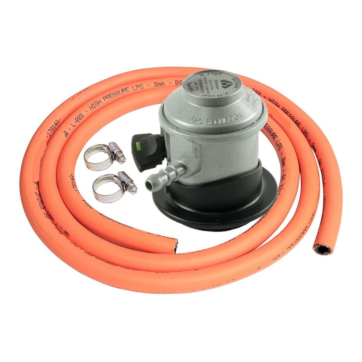 Propane Gas Regulator & Hose Assembly | Clip-On Type with Safety Shut-Off