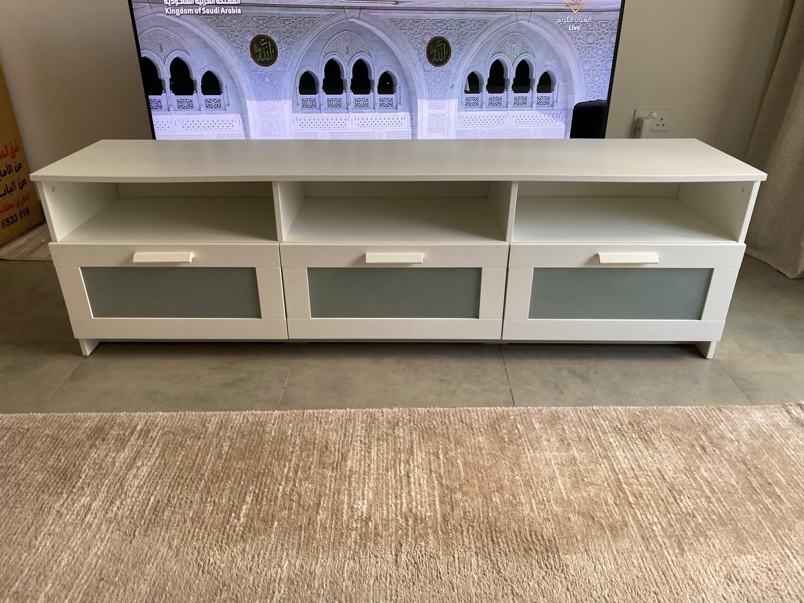 IKEA TV Unit with 3 Storage Drawers – White Modern Media Console