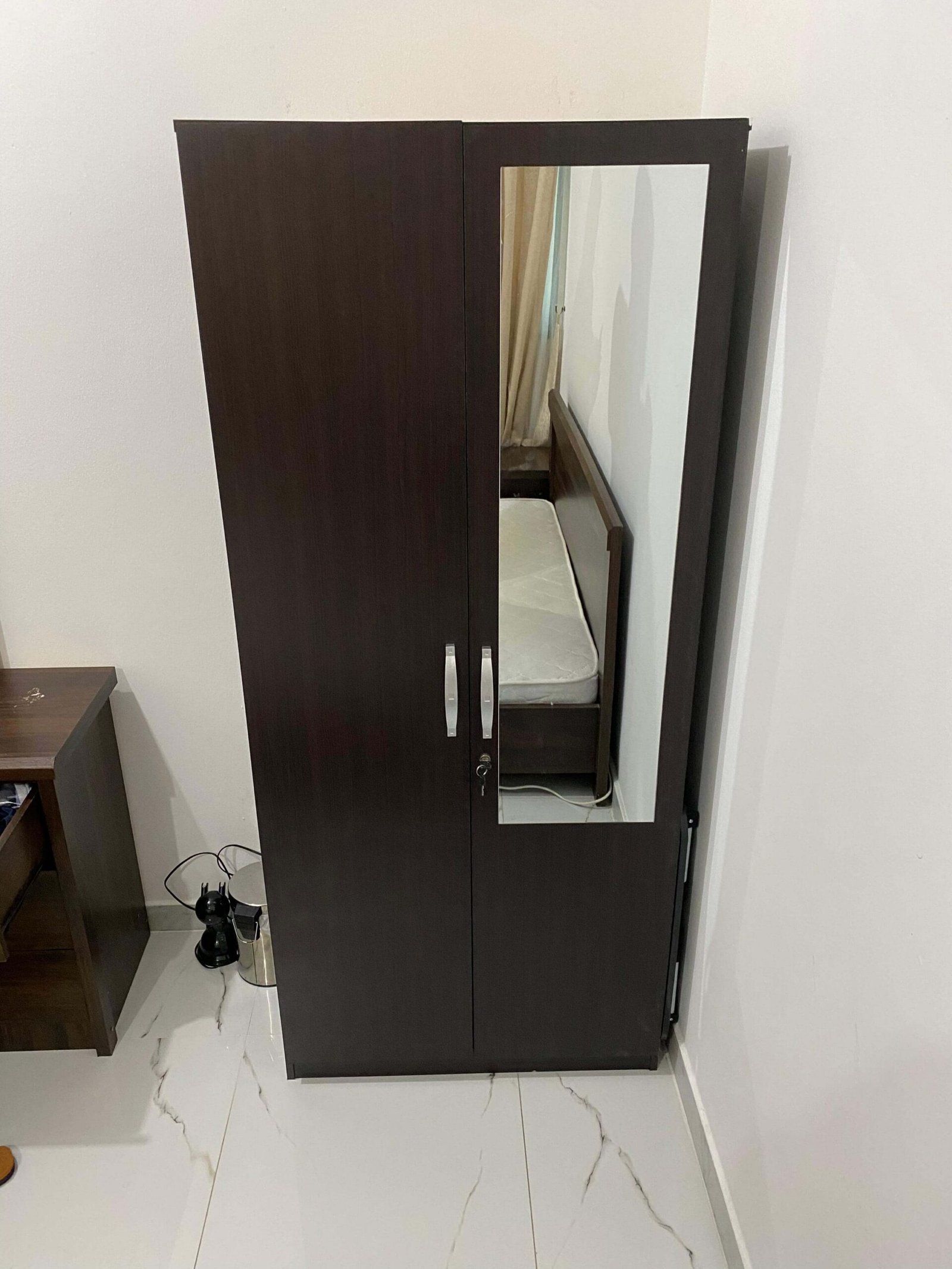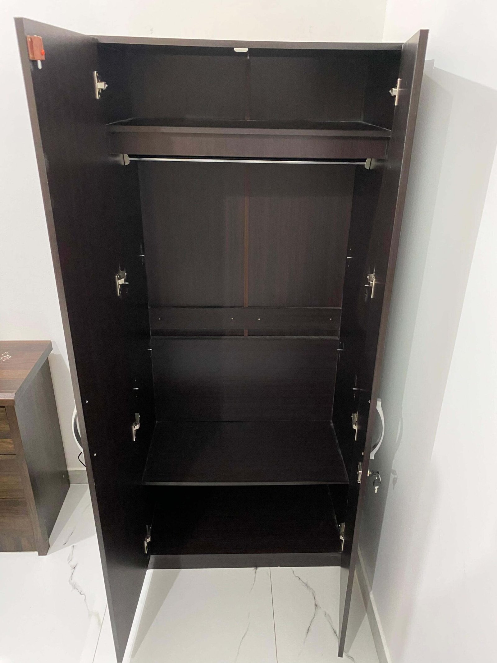 Elevate your storage with this sophisticated MAF 2-door wardrobe, designed to blend functionality and modern style. Featuring a rich brown finish, durable stainless steel handle, and a practical full-length mirror, this piece offers an elegant solution for organizing your clothing and accessories. In excellent, barely-used condition, it’s a versatile addition to any bedroom or dressing area.