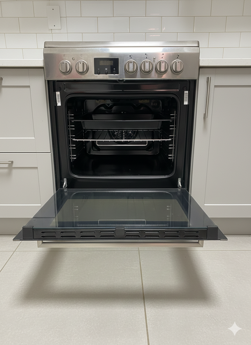 Intuitive Mechanical Controls: Simple rotary knobs for the hob and oven, paired with a clear digital timer for straightforward operation.