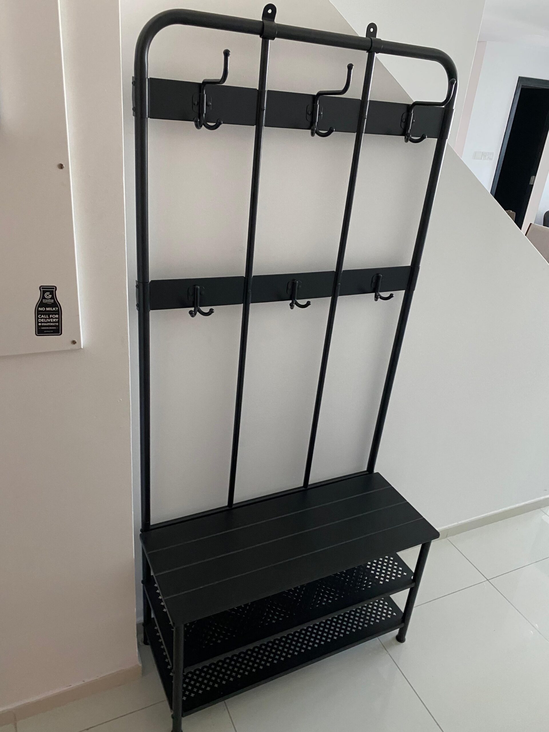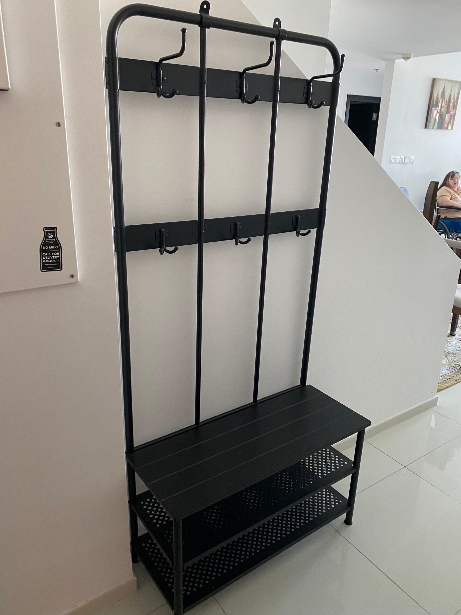Metal Hallway Coat Rack with Bench & Shoe Storage