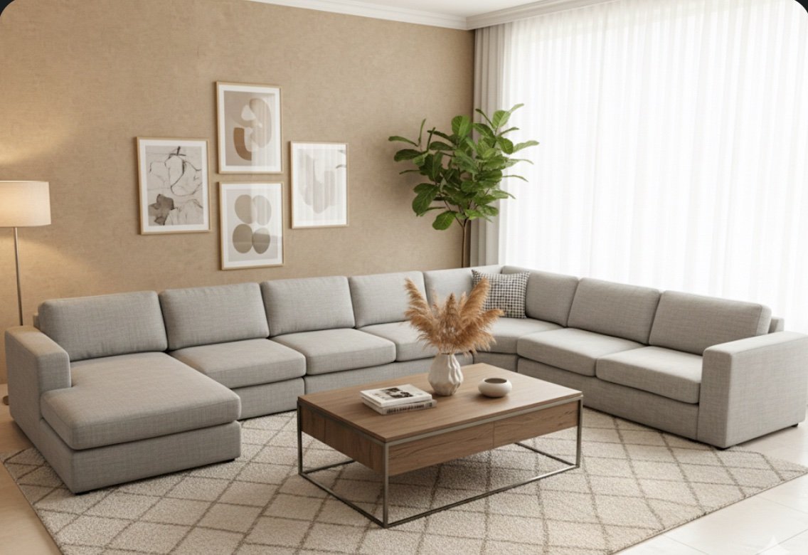 ↓ 8% Sofa Sets & Arm Chair Home Centre Eterno Modular U-Shaped Sofa | Light Grey | 8-Seater د.إ 3,000.00 Original price was: د.إ 3,000.00.د.إ 2,755.00Current price is: د.إ 2,755.00.
